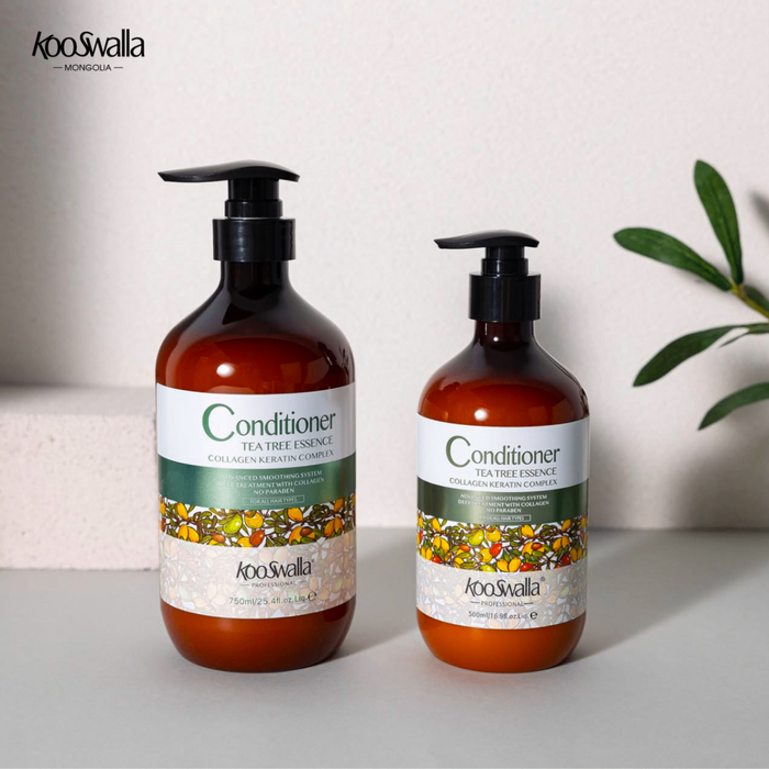 KooSwalla Tea Tree Essence ангижруулагч нь үсний угаас үзүүр хүртэл бүрэн чийгшүүлж, үсний гялалзсан, зөөлөн байдлыг удаан хугацаанд хадгална. Найрлагандаа цайны модны тос агуулсан бөгөөд Витамин Е болон Кератинаар баялаг.